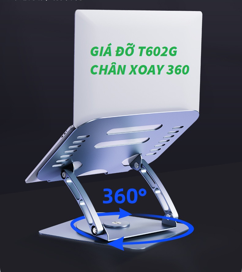 T602G Đế Đỡ Macbook, Laptop Chân Đế Xoay 360 Độ Hợp Kim Nhôm