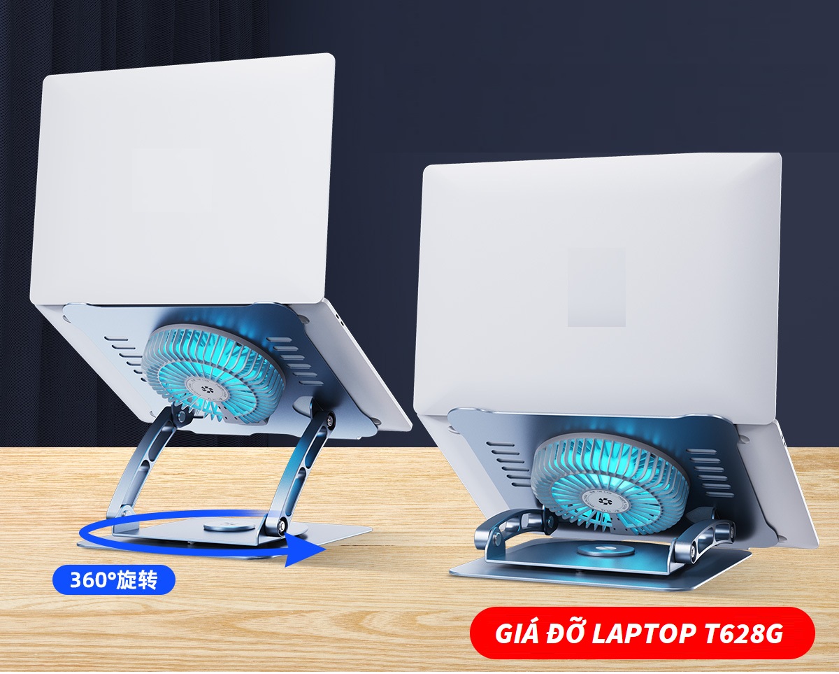 T628G Giá Đỡ Laptop, Macbook Kiêm Quạt Tản Nhiệt Hợp Kim Nhôm Cao Cấp