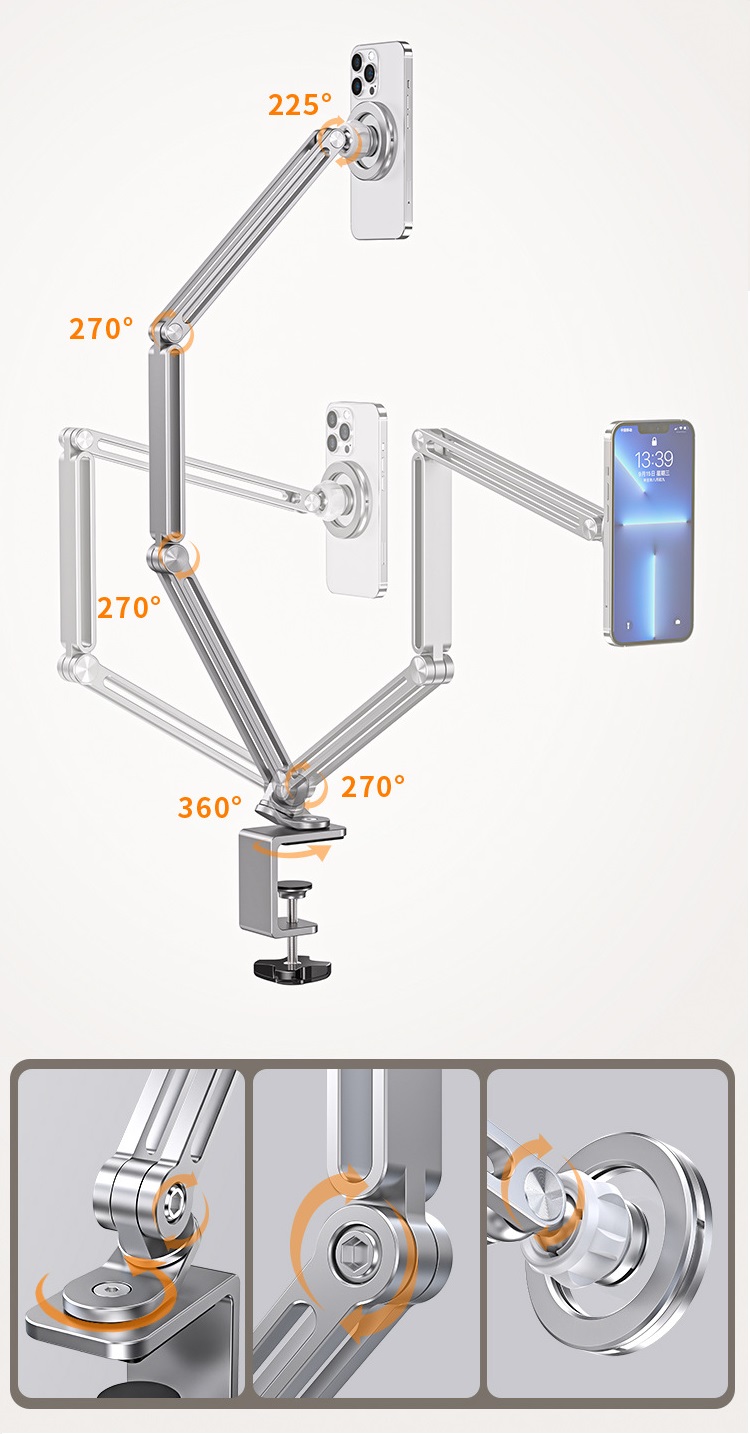 Z67 | Tay Hít Nam Châm Đỡ Điện Thoại, iPhone – Kẹp Cạnh Bàn Hợp Kim Nhôm